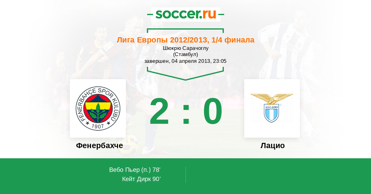 Протокол матча Фенербахче против Лацио