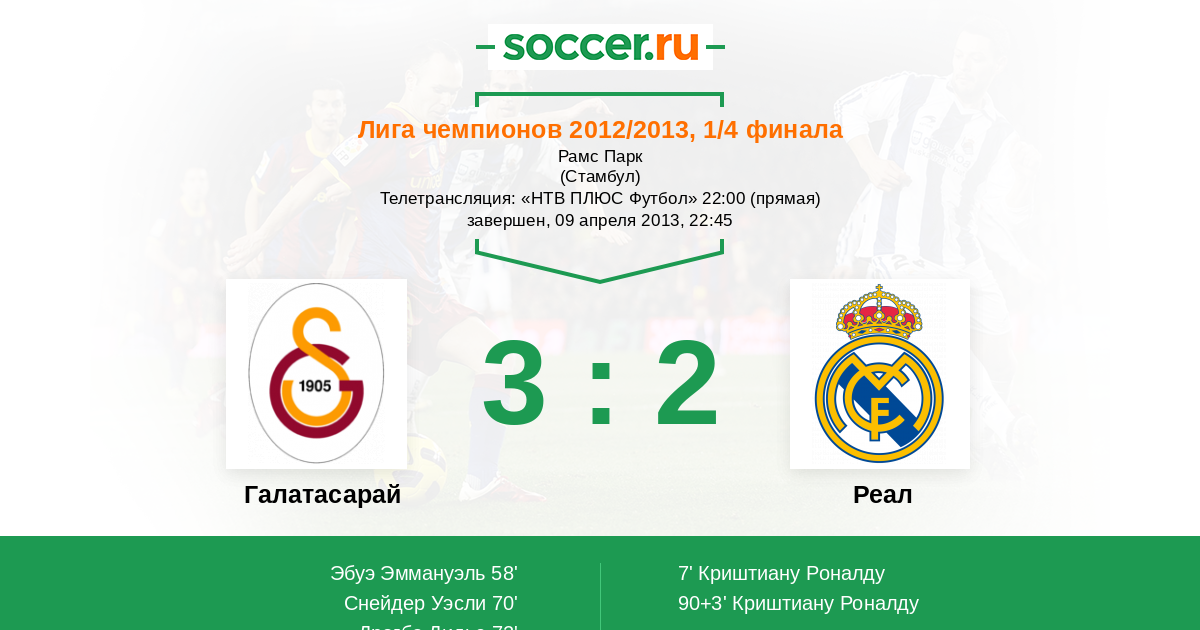 Протокол матча Галатасарай против Реал