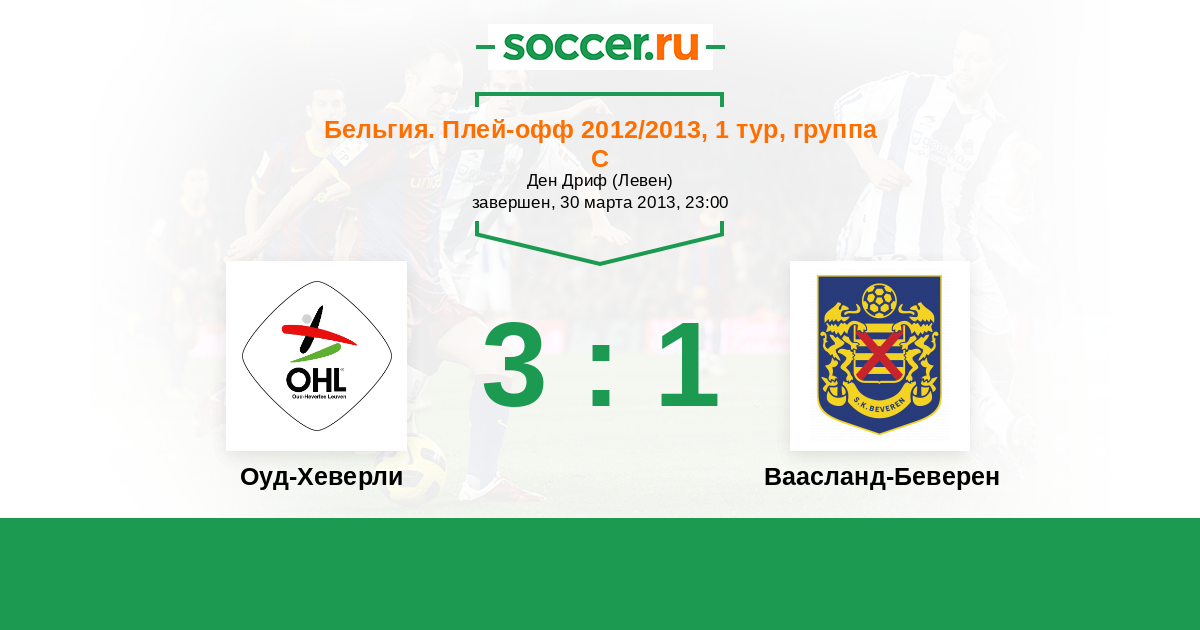 Бельгия. Про-Лига 04.05.2013 Ваасланд-Беверен Логотип футбольный клуб Ваасланд-Беверен 0:1 Логотип футбольный клуб Оуд-Хеверли (Левен) Оуд-Хеверли