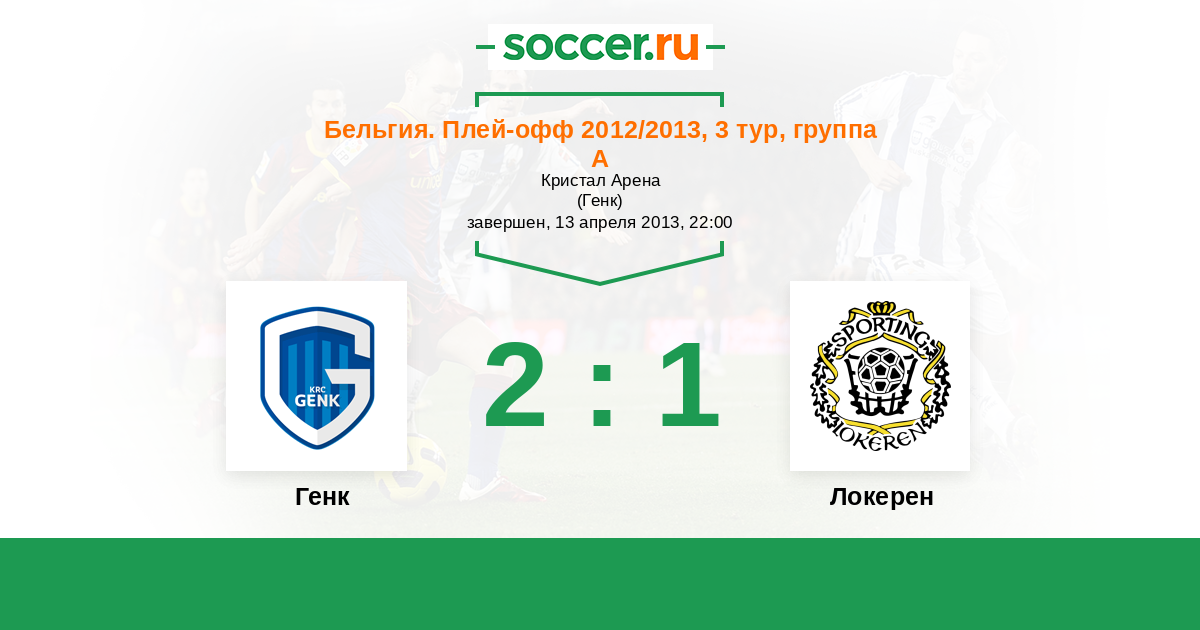 Бельгия. Про-Лига 27.04.2013 Локерен Логотип футбольный клуб Локерен 0:0 Логотип футбольный клуб Генк Генк