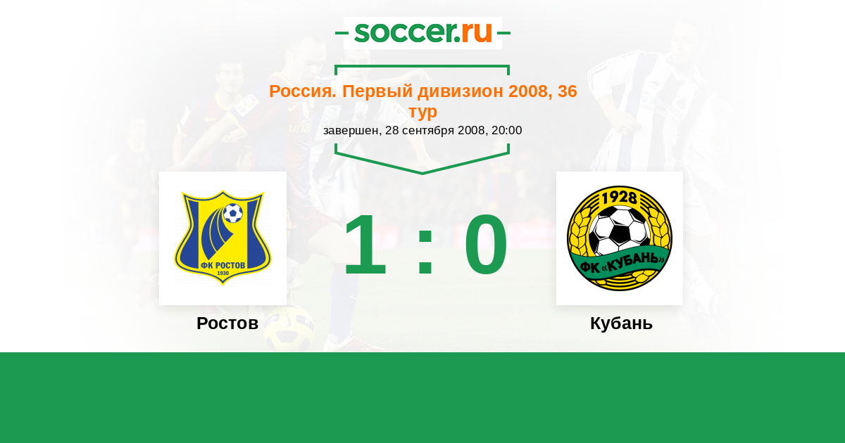 Россия. Первая лига 07.06.2008 Кубань Логотип футбольный клуб Кубань (Краснодар) 1:1 Логотип футбольный клуб Ростов (Ростов-на-Дону) Ростов