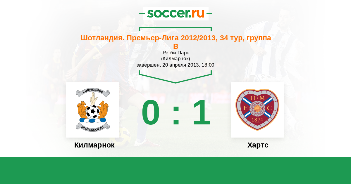Шотландия. Премьер-Лига 26.12.2012 Килмарнок Логотип футбольный клуб Килмарнок 1:0 Логотип футбольный клуб Хартс (Эдинбург) Хартс