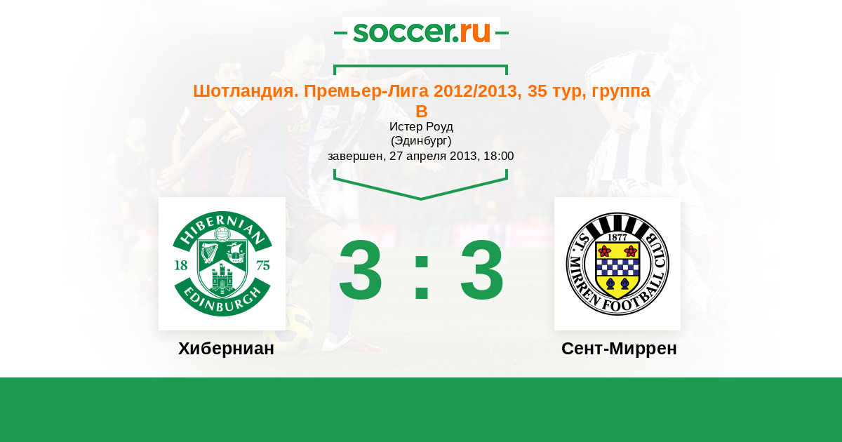 Шотландия. Премьер-Лига 24.04.2011 Хиберниан Логотип футбольный клуб Хиберниан (Эдинбург) 1:1 Логотип футбольный клуб Сент-Миррен (Пейсли) Сент-Миррен