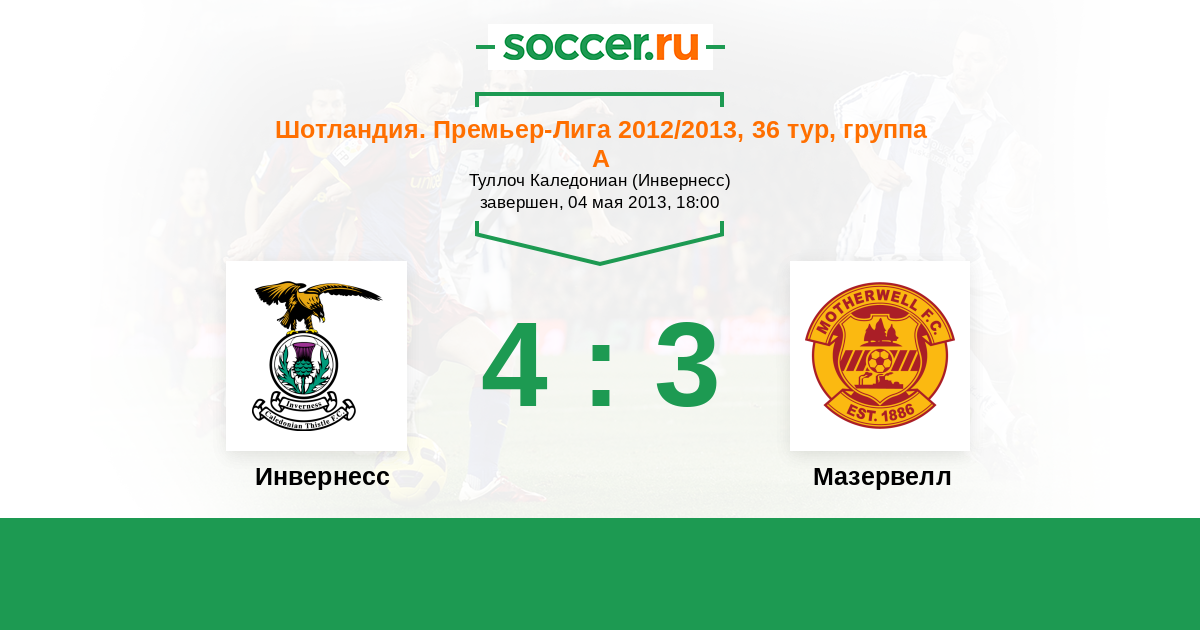 Шотландия. Премьер-Лига 18.11.2012 Инвернесс Логотип футбольный клуб Инвернесс 1:5 Логотип футбольный клуб Мазервелл Мазервелл