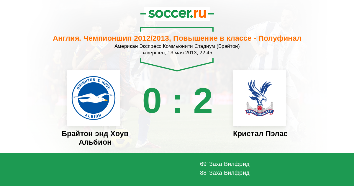 Протокол матча Брайтон энд Хоув Альбион против Кристал Пэлас