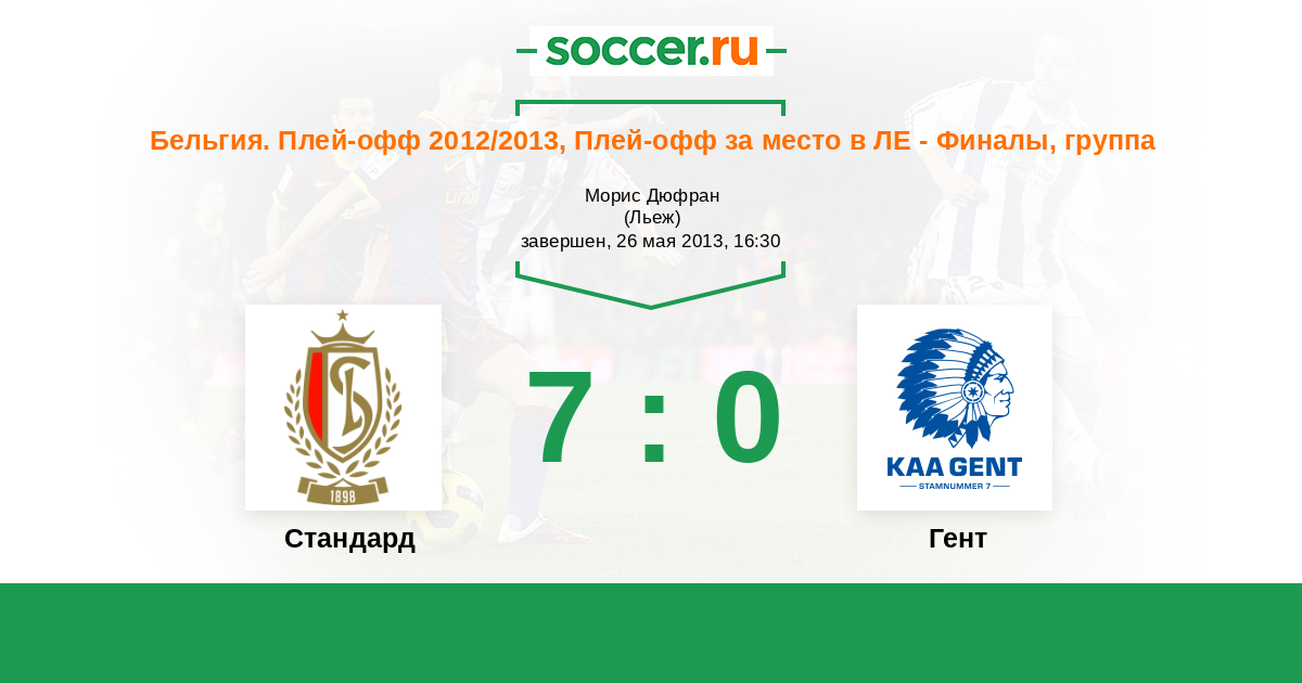 Бельгия. Про-Лига 23.05.2013 Гент Логотип футбольный клуб Гент 1:0 Логотип футбольный клуб Стандард (Льеж) Стандард