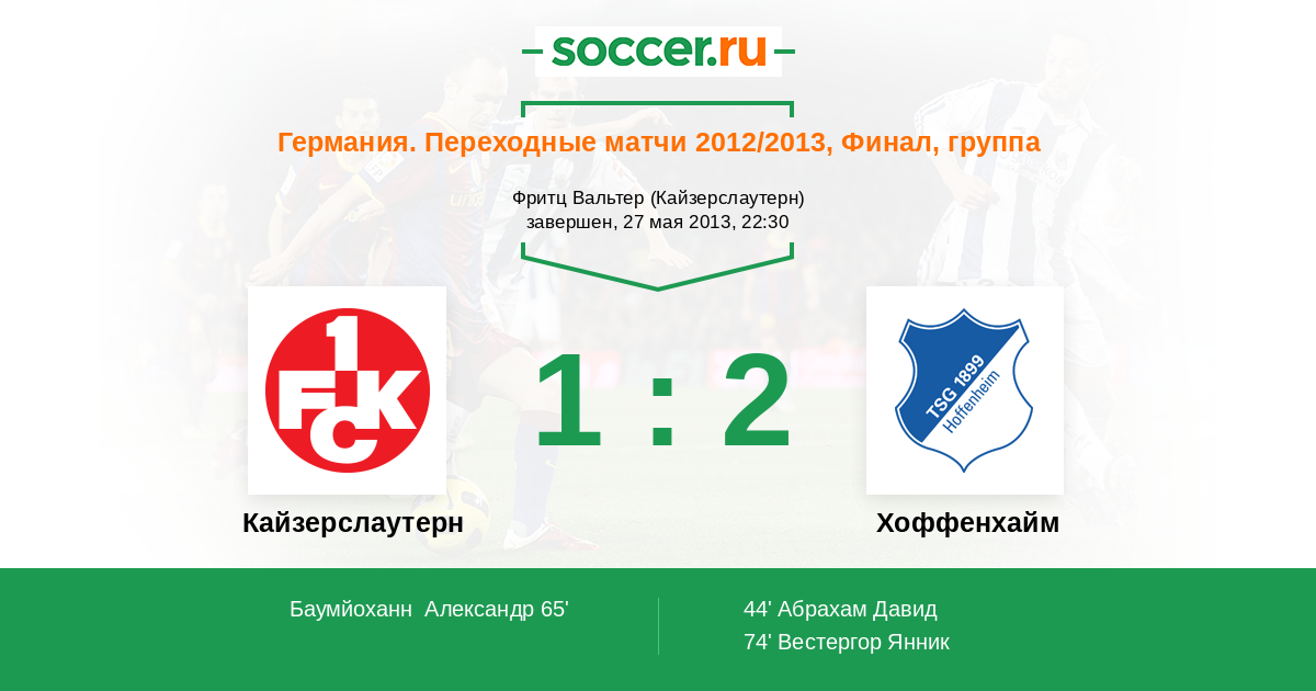 Протокол матча Кайзерслаутерн против Хоффенхайм