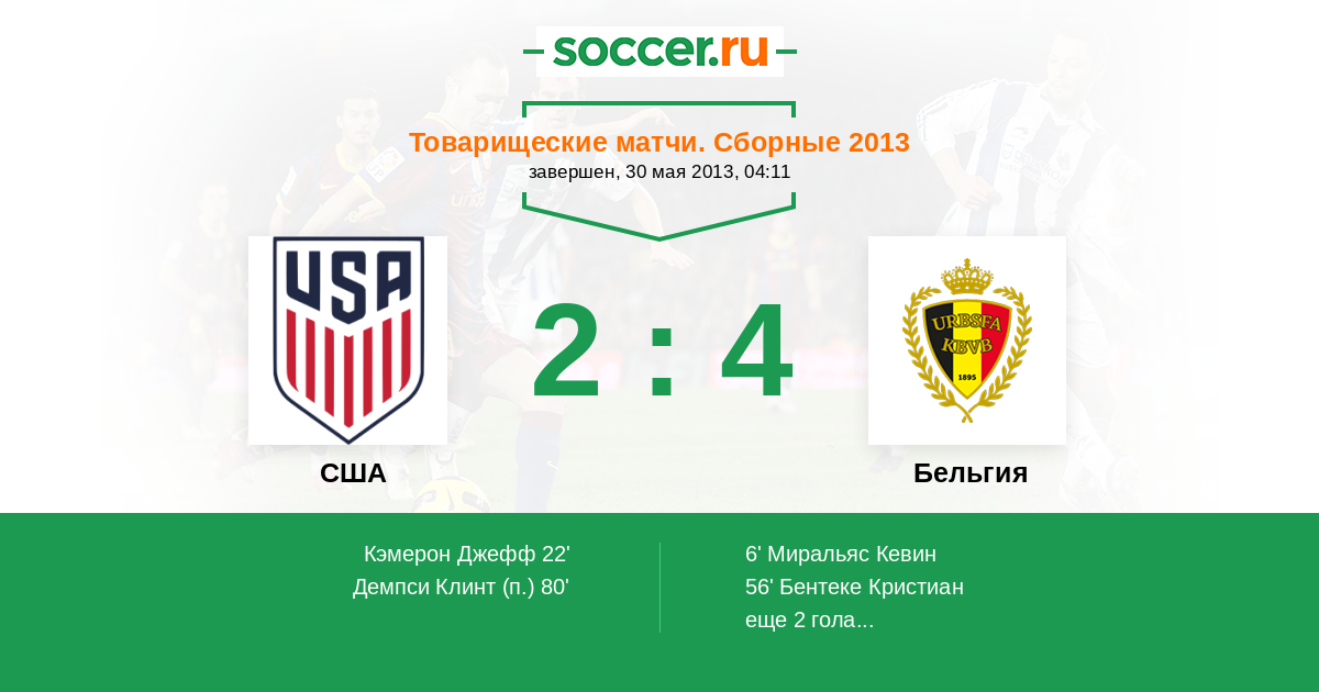 Протокол матча США против Бельгия