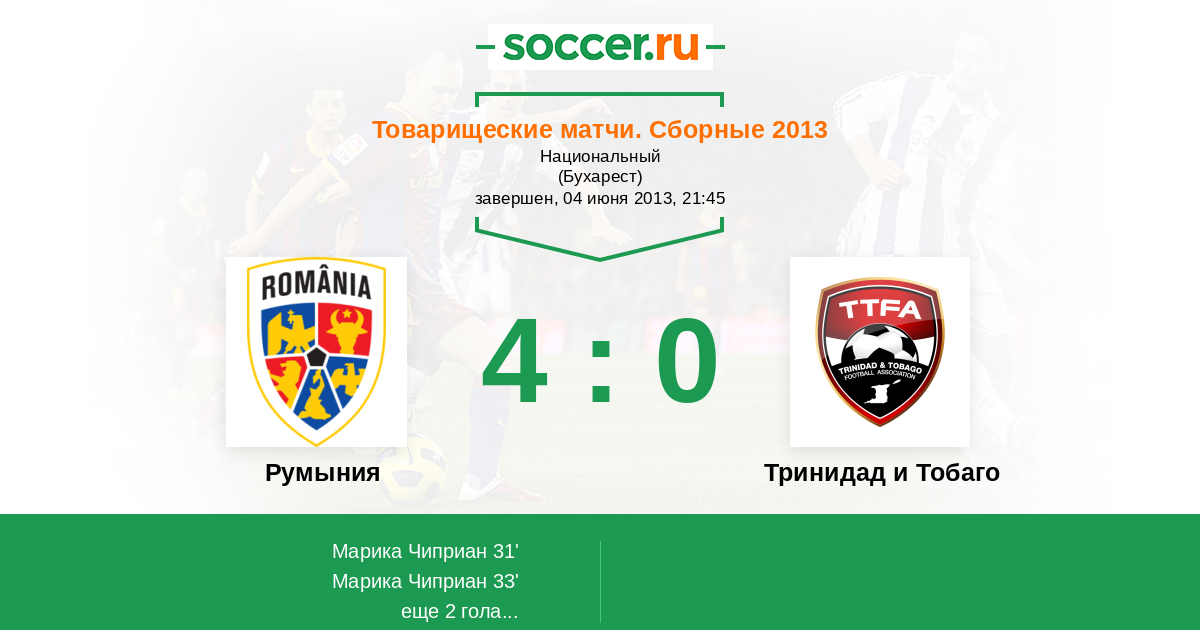 Протокол матча Румыния против Тринидад и Тобаго