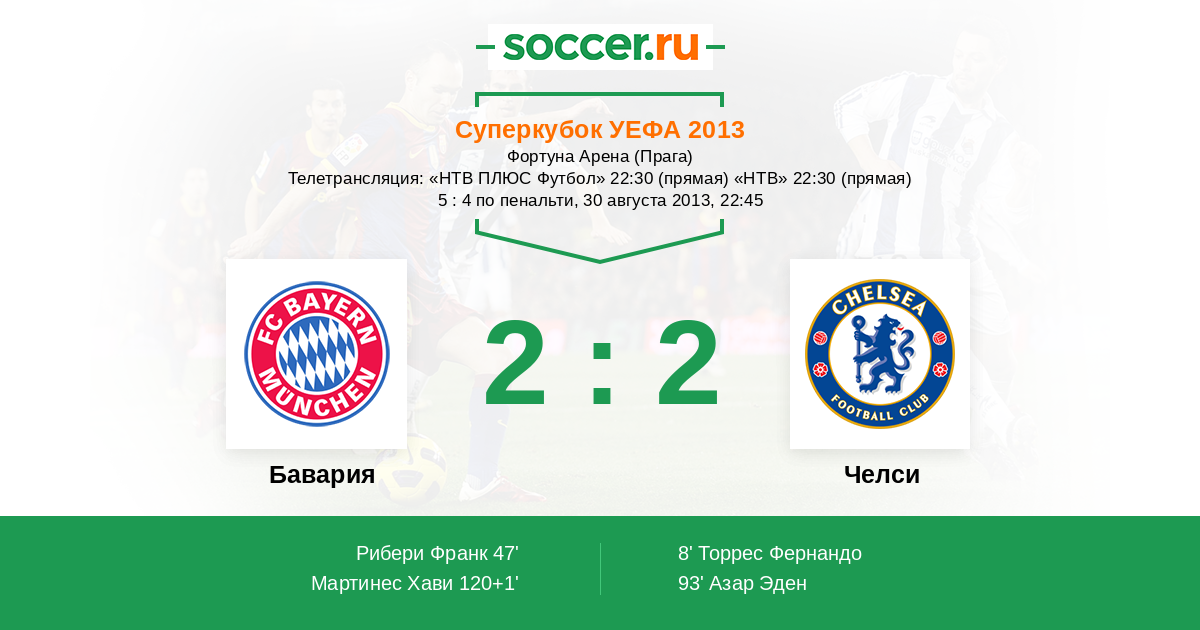 Протокол матча Бавария против Челси