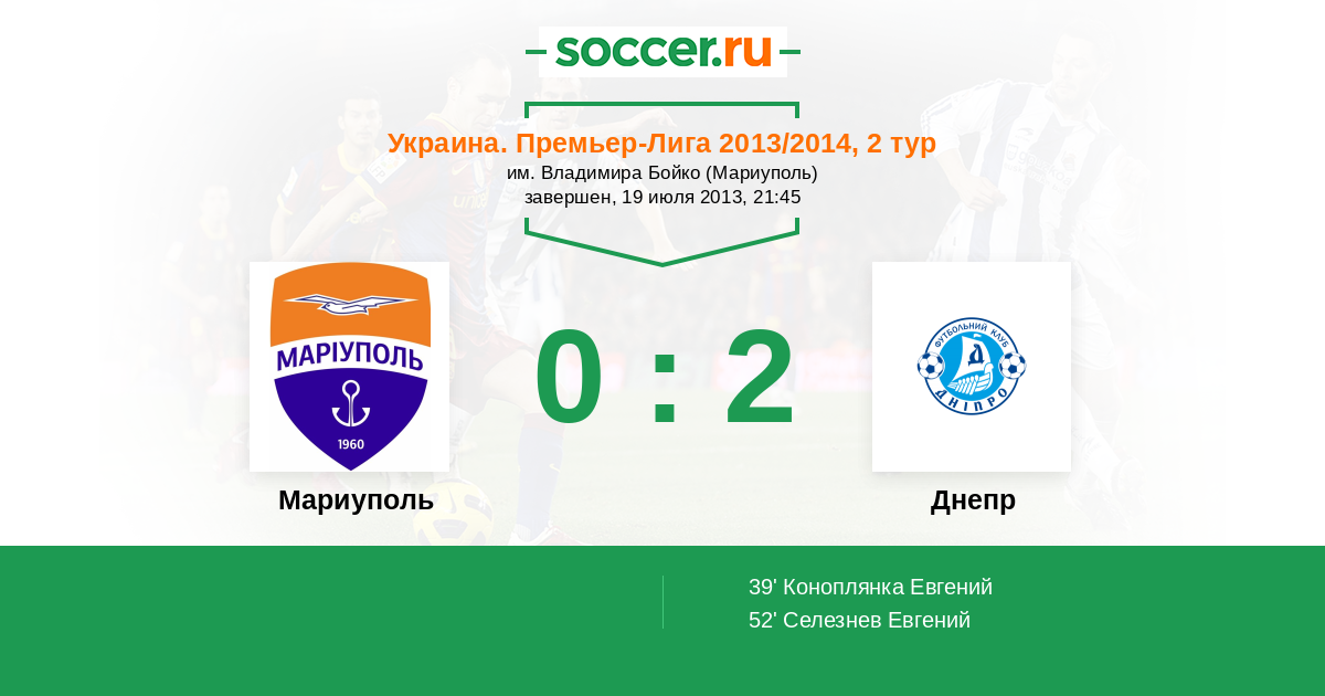 Протокол матча Ильичевец против Днепр