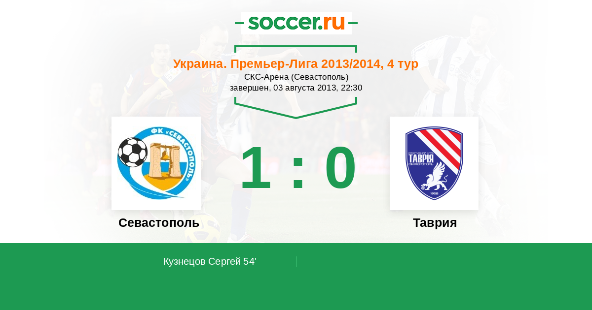 Протокол матча Севастополь против Таврия