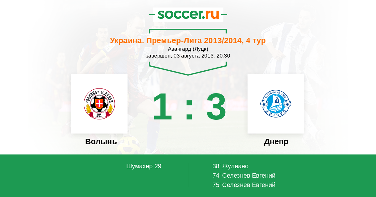 Протокол матча Волынь против Днепр