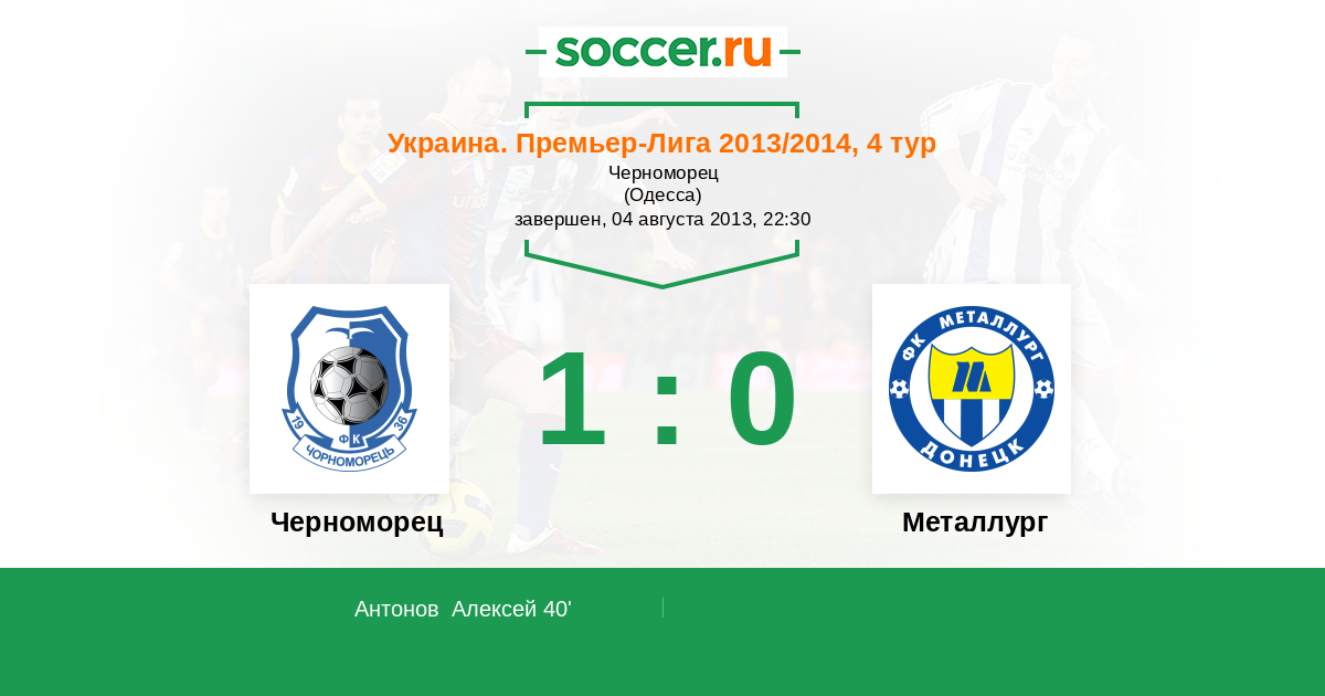 Протокол матча Черноморец против Металлург