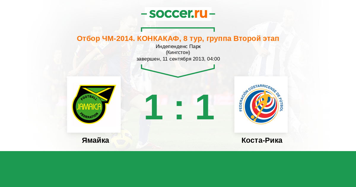 Отбор ЧМ. КОНКАКАФ 26.03.2016 Ямайка Логотип Ямайка 1:1 Логотип Коста-Рика Коста-Рика