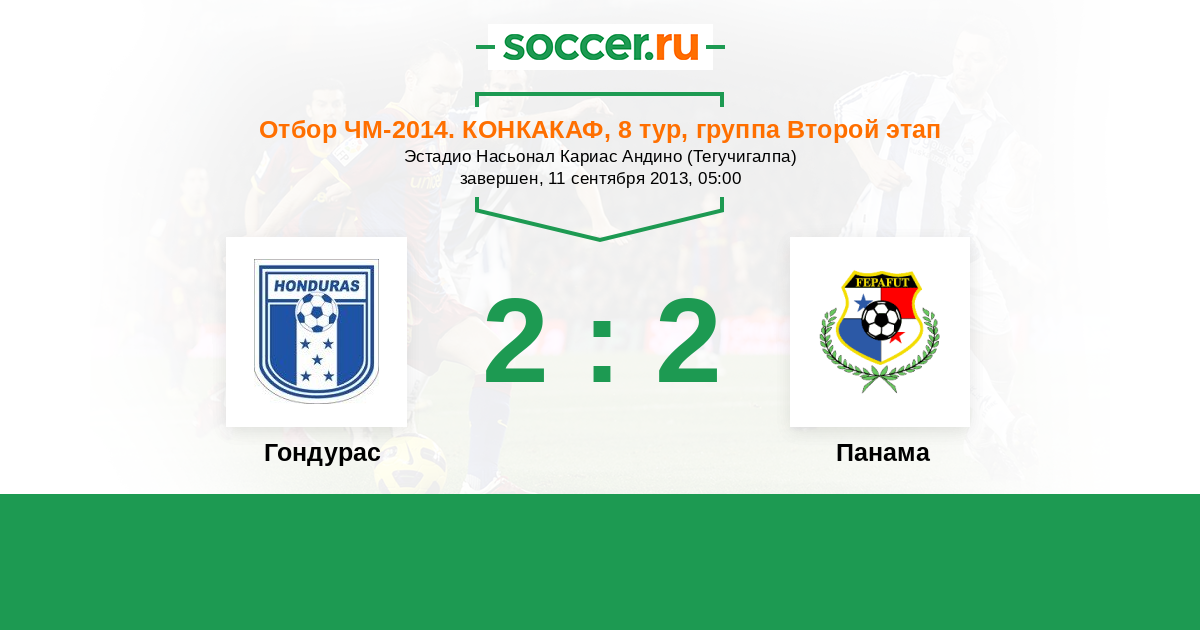 Отбор ЧМ. КОНКАКАФ 27.03.2013 Панама Логотип Панама 2:0 Логотип Гондурас Гондурас