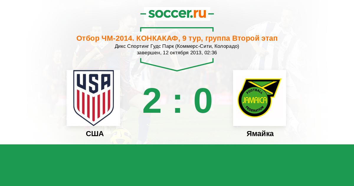 Отбор ЧМ. КОНКАКАФ 12.09.2012 США Логотип США 1:0 Логотип Ямайка Ямайка