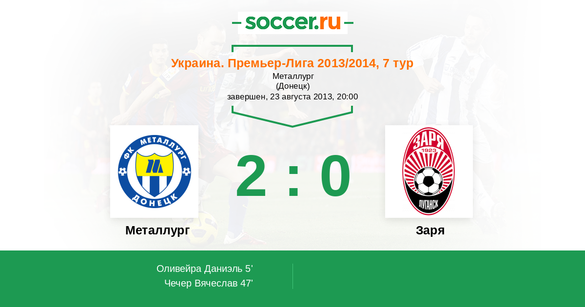 Протокол матча Металлург против Заря