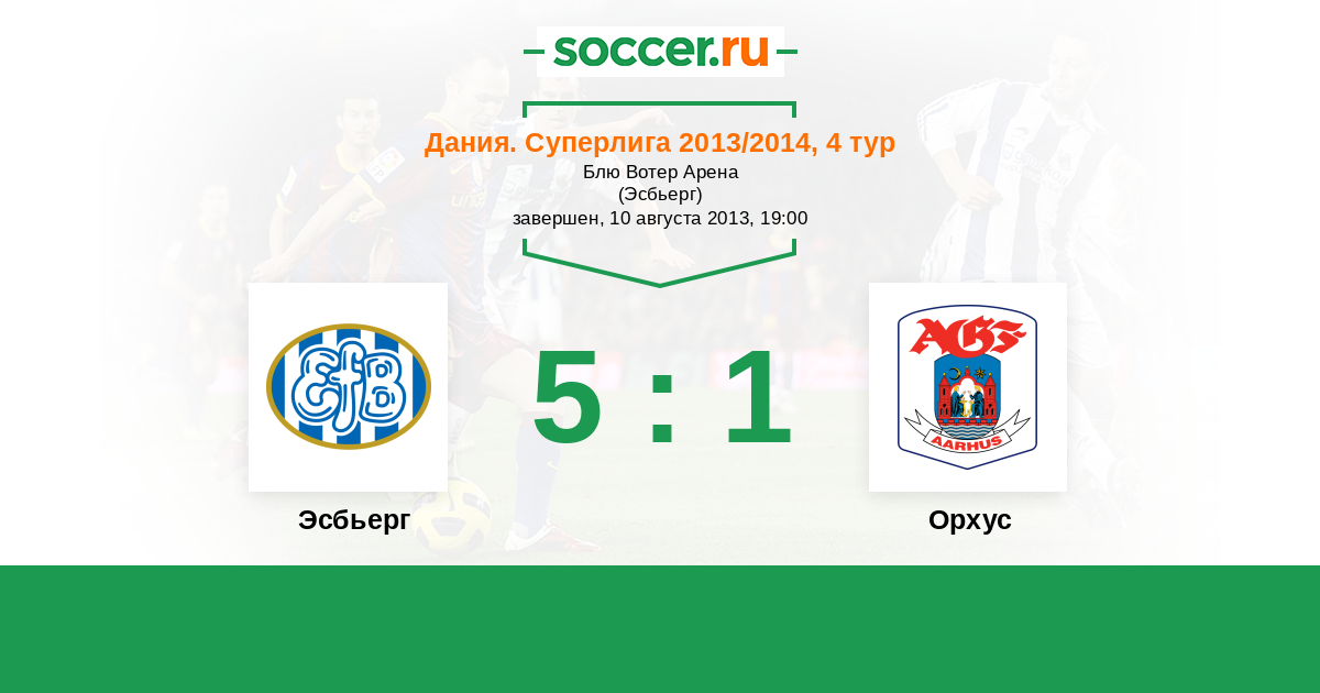 Дания. Суперлига 23.07.2012 Орхус Логотип футбольный клуб Орхус 0:0 Логотип футбольный клуб Эсбьерг Эсбьерг