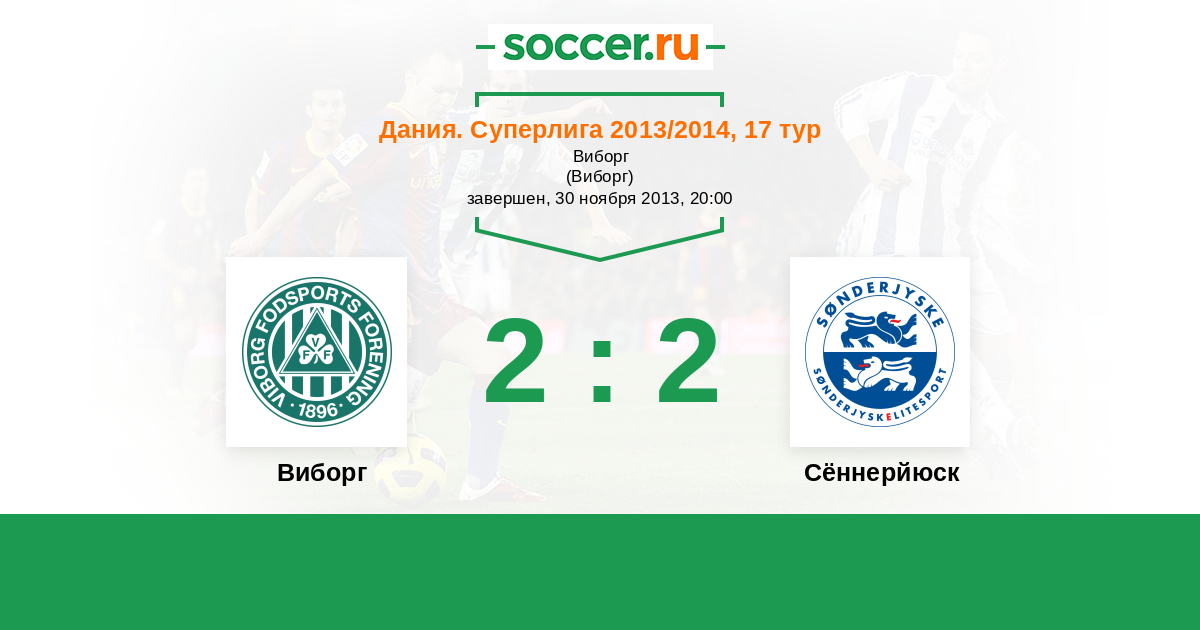 Дания. Суперлига 04.05.2014 Сённерйюск Логотип футбольный клуб Сённерйюск (Хадерслев) 1:0 Логотип футбольный клуб Виборг Виборг