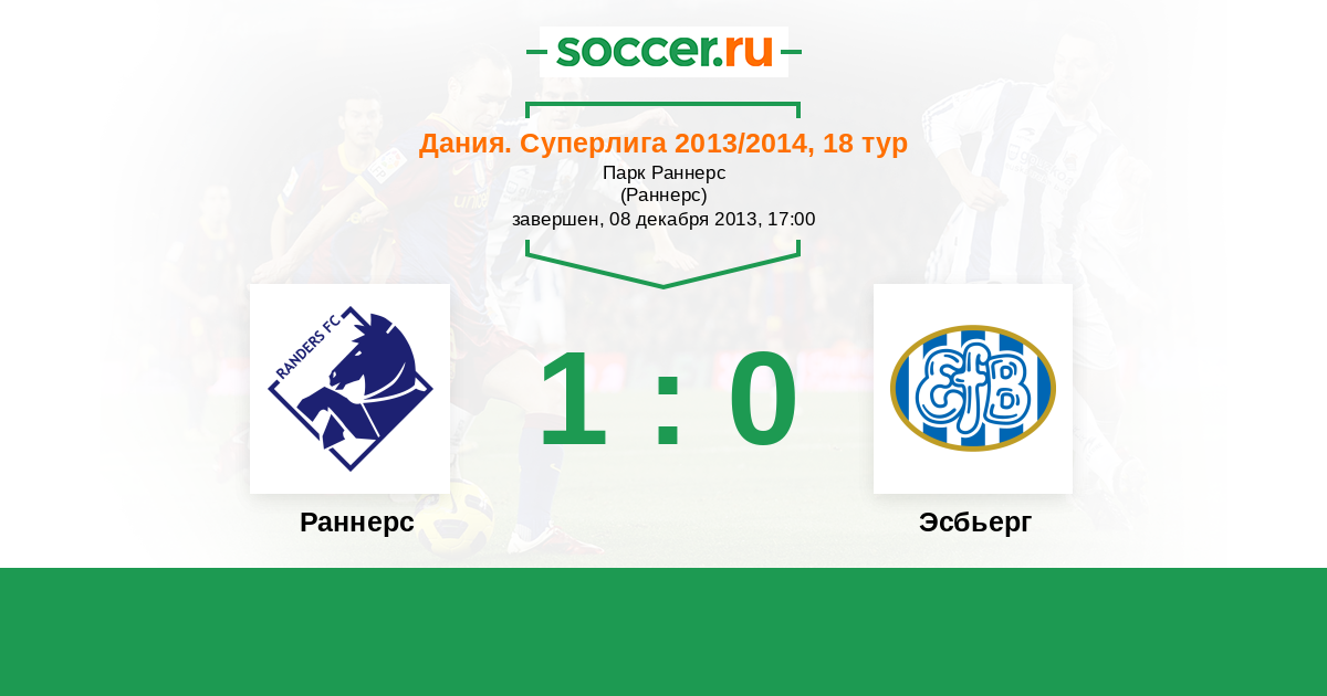 Дания. Суперлига 19.08.2013 Раннерс Логотип футбольный клуб Раннерс 3:2 Логотип футбольный клуб Эсбьерг Эсбьерг