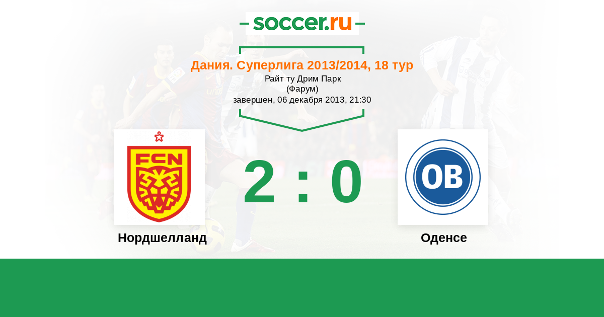 Дания. Суперлига 29.09.2014 Нордшелланд Логотип футбольный клуб Нордшелланд (Фарум) 2:1 Логотип футбольный клуб Оденсе Оденсе