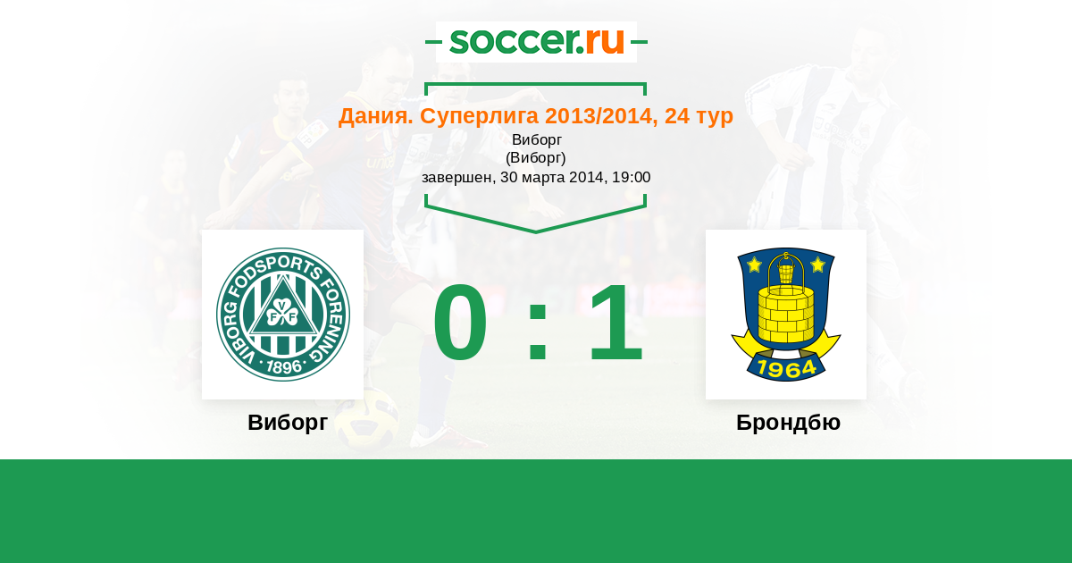 Дания. Суперлига 20.10.2013 Брондбю Логотип футбольный клуб Брондбю (Брённбю) 0:0 Логотип футбольный клуб Виборг Виборг