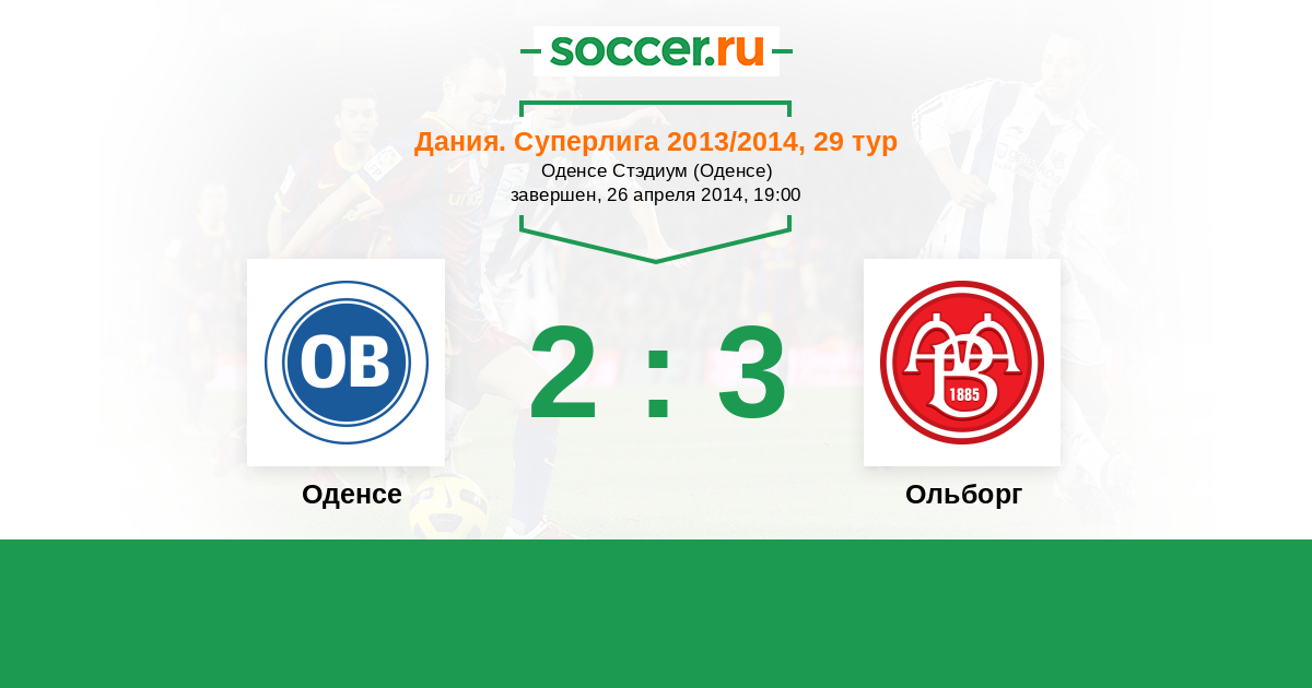 Дания. Суперлига 02.08.2014 Оденсе Логотип футбольный клуб Оденсе 1:1 Логотип футбольный клуб Ольборг Ольборг