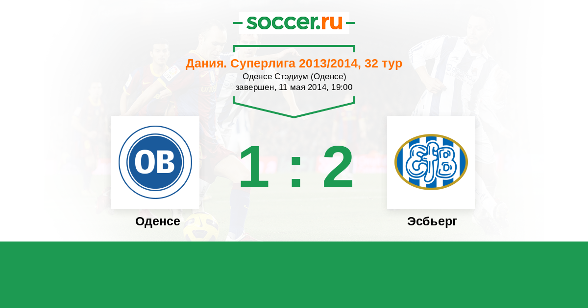 Дания. Суперлига 16.05.2013 Эсбьерг Логотип футбольный клуб Эсбьерг 6:2 Логотип футбольный клуб Оденсе Оденсе
