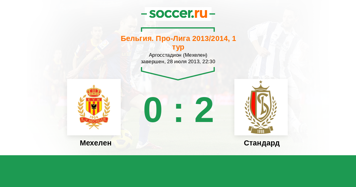Бельгия. Про-Лига 08.03.2014 Стандард Логотип футбольный клуб Стандард (Льеж) 2:0 Логотип футбольный клуб Мехелен Мехелен