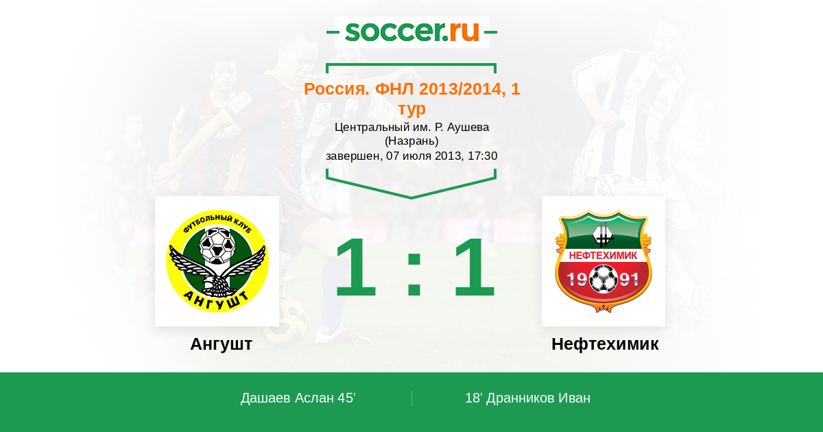 Протокол матча Ангушт против Нефтехимик