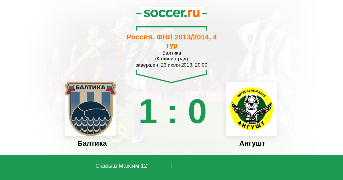 Протокол матча Балтика против Ангушт