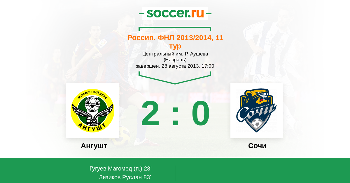 Протокол матча Ангушт против Динамо СПб
