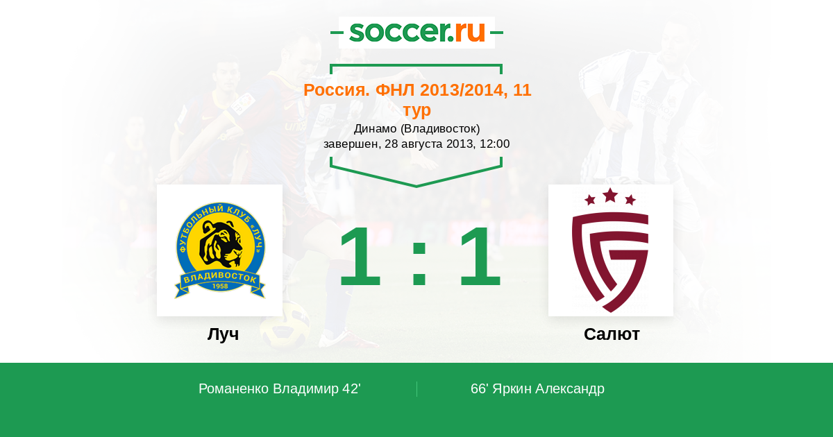Протокол матча Луч против Салют