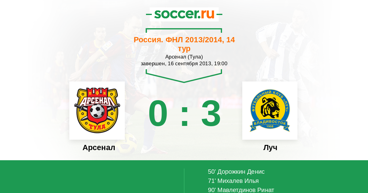 Протокол матча Арсенал против Луч