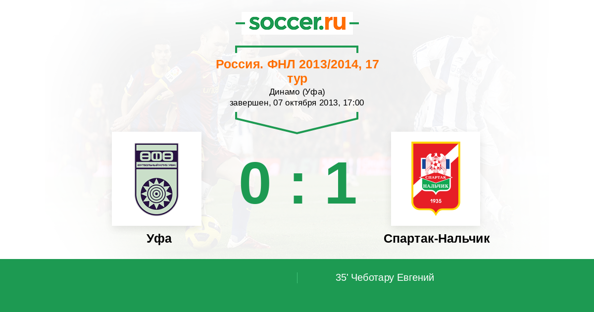 Протокол матча Уфа против Спартак-Нальчик