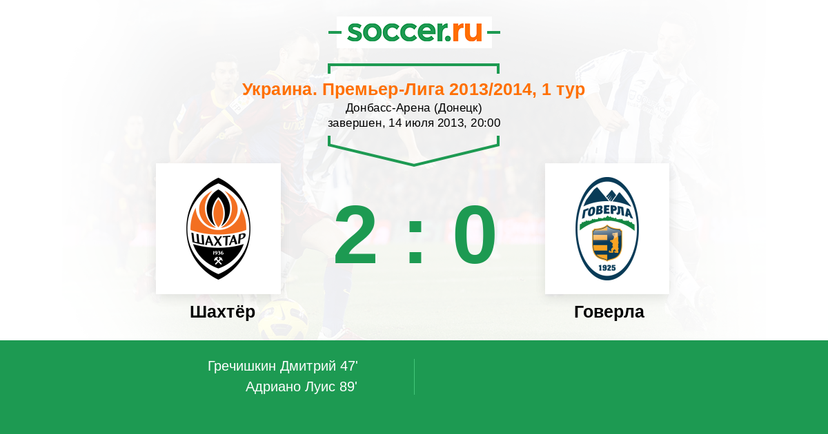 Протокол матча Шахтёр против Говерла
