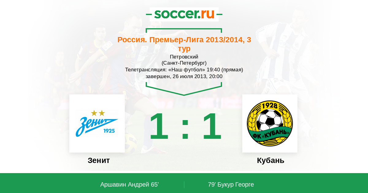 Протокол матча Зенит против Кубань