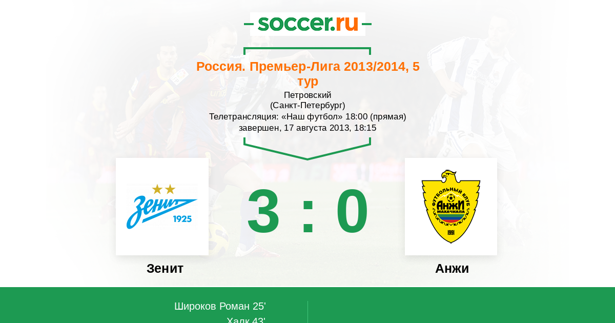 Протокол матча Зенит против Анжи