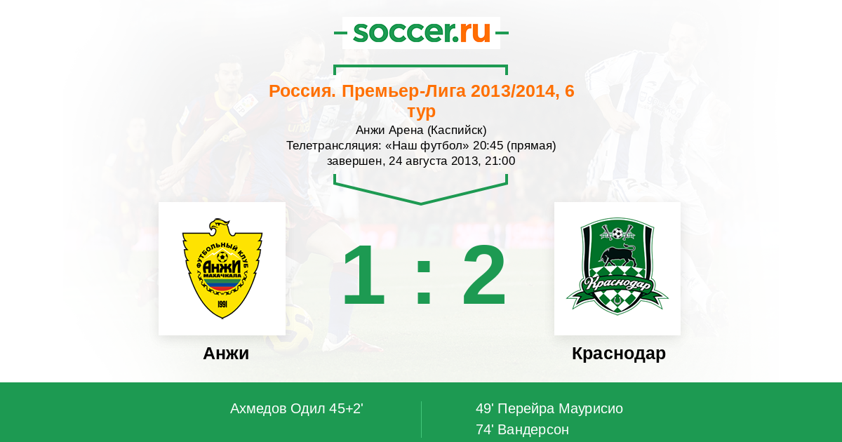 Протокол матча Анжи против Краснодар