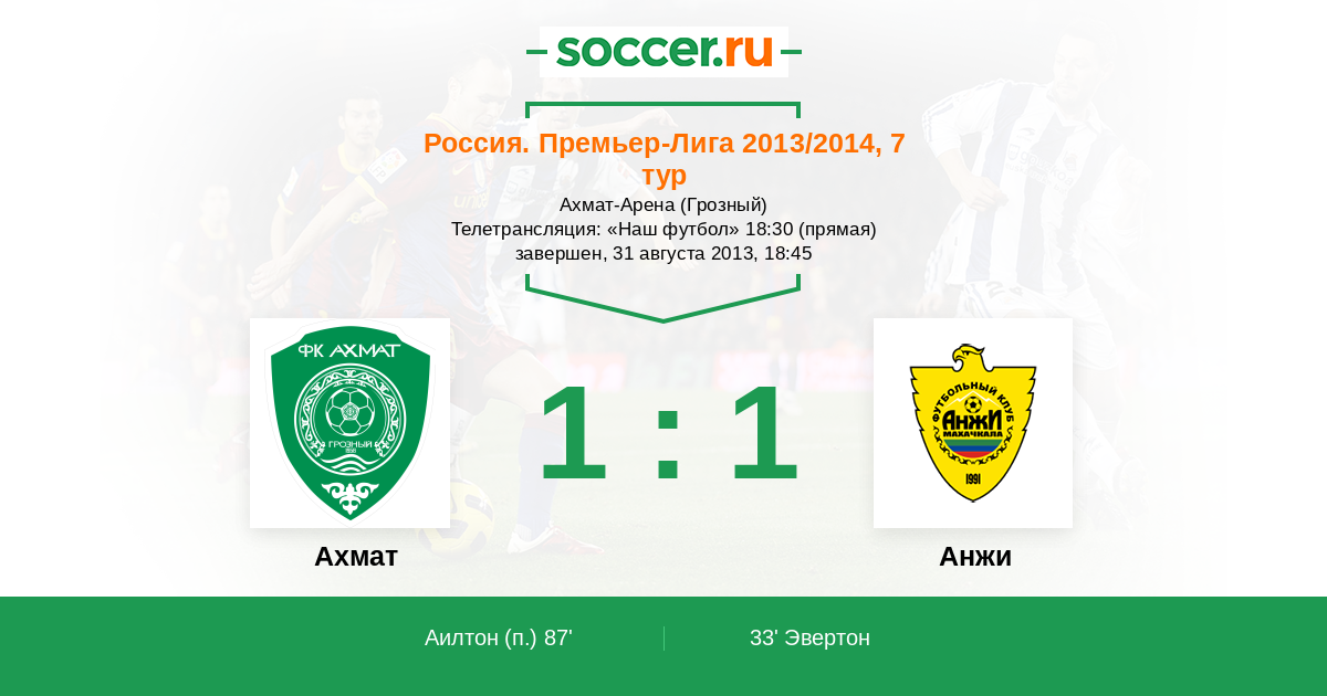 Протокол матча Терек против Анжи