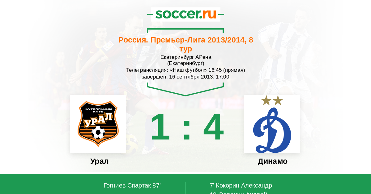 Протокол матча Урал против Динамо