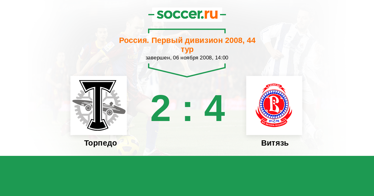 Россия. Первая лига 30.03.2008 Витязь Логотип футбольный клуб Витязь (Подольск) 0:1 Логотип футбольный клуб Торпедо (Москва) Торпедо