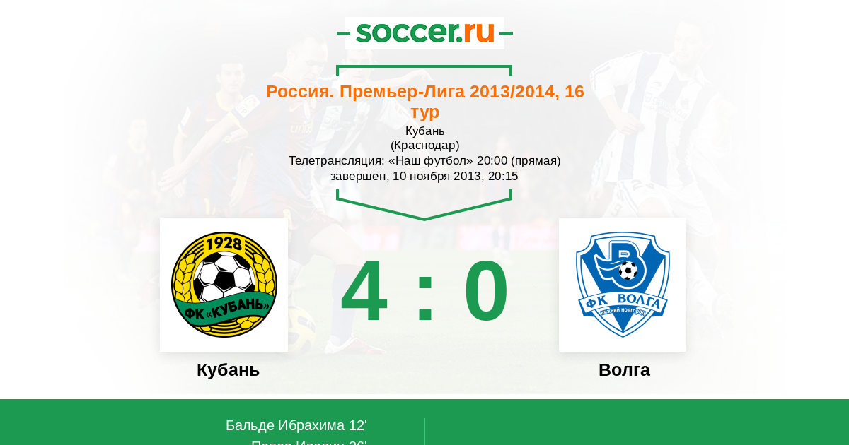 Протокол матча Кубань против Волга