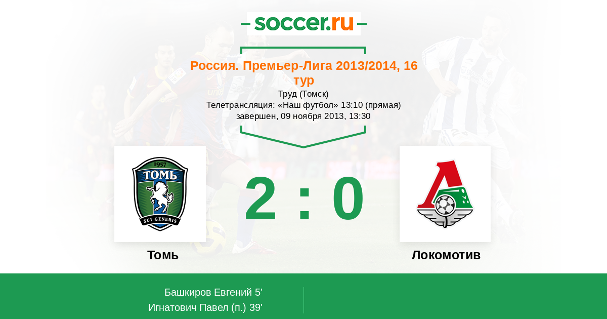 Протокол матча Томь против Локомотив