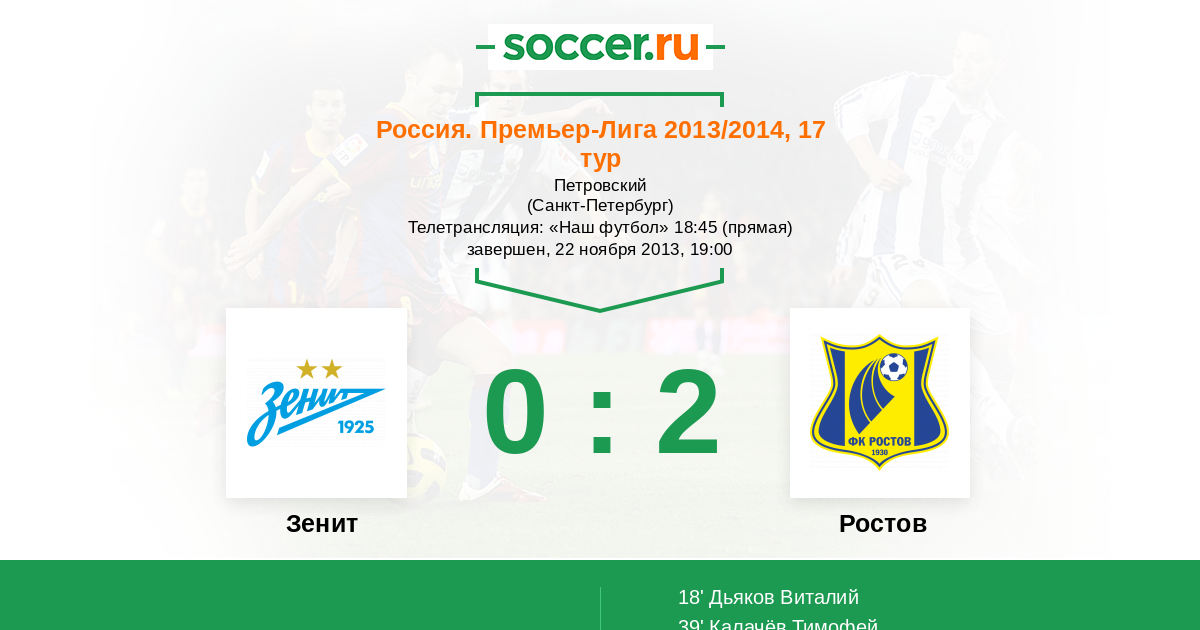 Протокол матча Зенит против Ростов