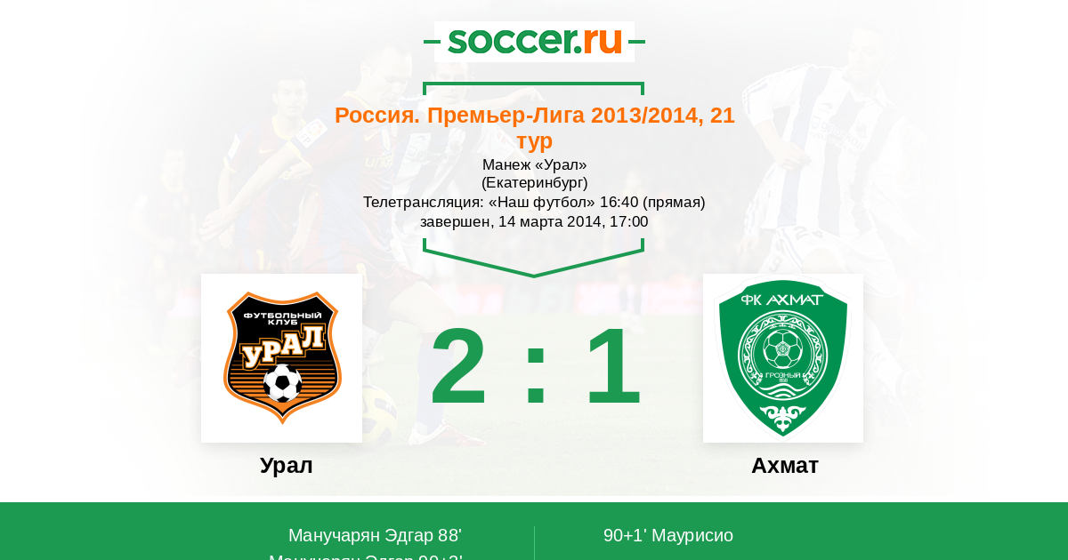 90+3' (2:1) Манучарян Эдгар (87) (Гогниев Спартак (9))