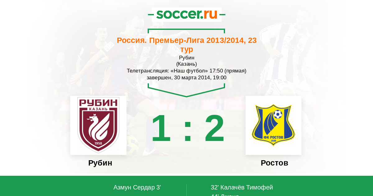 Протокол матча Рубин против Ростов