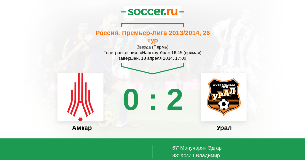 Протокол матча Амкар против Урал