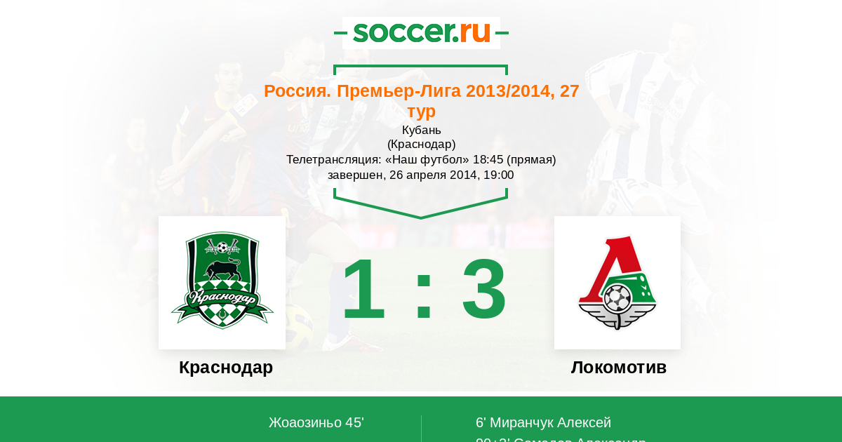 6' (0:1) Миранчук Алексей (59) (Павлюченко Роман (9))